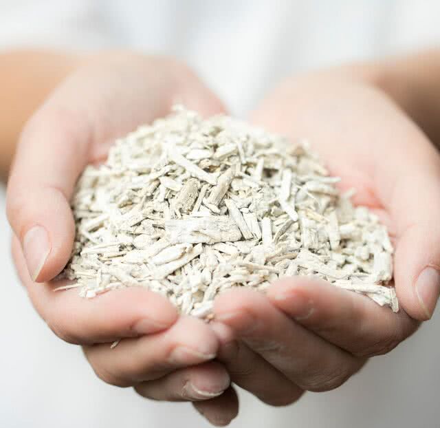 Issue du défibrage de la plante, cette poudre se compose de particules de fibres, de chènevotte et de matières minérales. On l’utilise généralement comme source d’énergie (verte), notamment sous forme compressée de granulés et de briquette mais aussi comme compost ou dans la fabrication de litière.