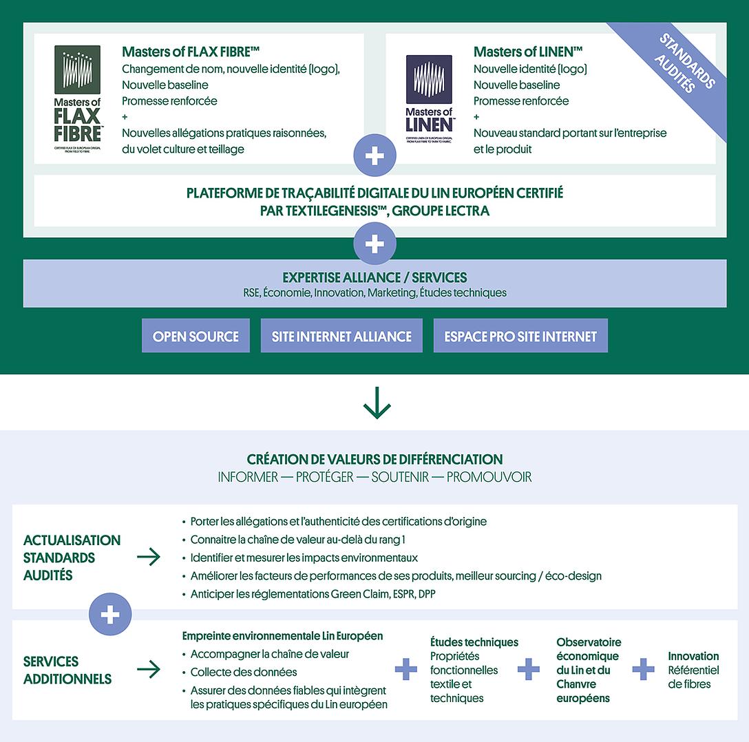 L’Alliance et son collectif renforcent structurellement les certifications d’origine via l’évolution des standards Masters of FLAX FIBRE™ et Masters of LINEN™ en y intégrant la traçabilité digitale. Ainsi, la filière européenne du Lin certifié se positionne à la pointe de l’innovation responsable. Mise en place progressive du 1er janvier 2026 à mars 2027.