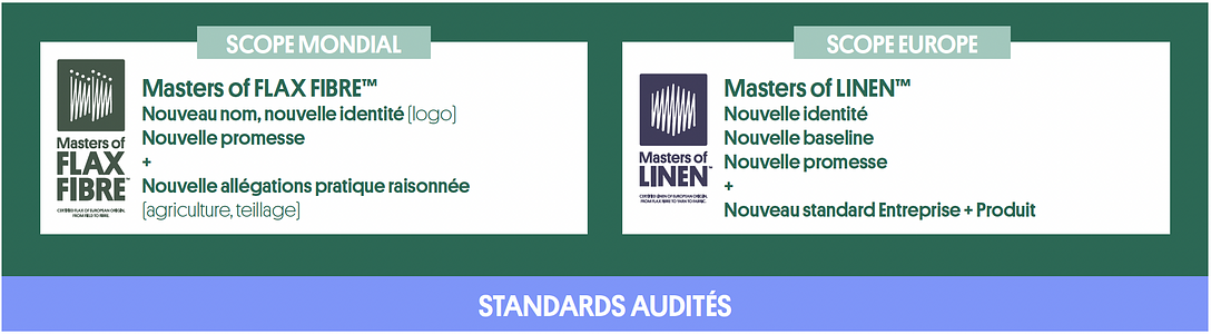 L’Alliance et son collectif renforcent structurellement les certifications d’origine via l’évolution des standards Masters of FLAX FIBRE™ et Masters of LINEN™ et la mise en place d’une plateforme de traçabilité digitale. Complémentaire et optionnelle, celle-ci permettra à la filière européenne du Lin certifié de se positionner à la pointe de l’innovation responsable. Déploiement progressif à partir du 1er janvier 2026.